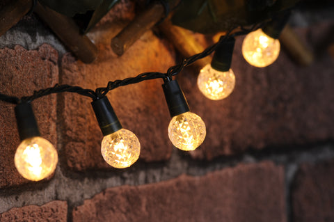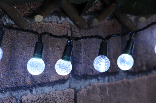 Crackle ball lights have 100 ice-white lights with multifunction on a green cable. Mains powered. The bulb spacing is 6cm apart, lit length of 5.94...