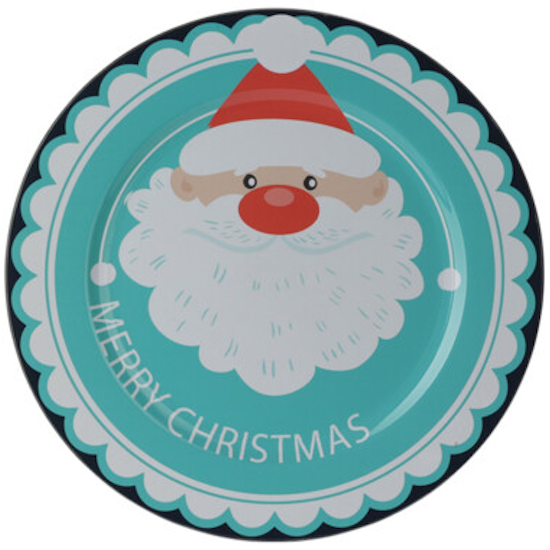 This Santa Serving Plate is sure to add a festive touch to any holiday celebration. Perfectly sized at 330x330x15mm, this lightweight plate (320 grams) is the perfect addition to any Christmas party. It features a turquoise surface with Santa's face adorned with Merry Christmas lettering, making it a cheerful way to serve your favourite dishes.