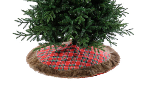 The perfect companion to your Highland Christmas Tree with this blue tartan with blue fur cuff tree skirt. Suitable for covering your water stand a...