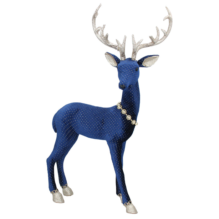 This Gisela Graham Blue Fabric Stag decoration is sure to bring festive cheer to your Christmas season. Made from durable fabric, it stands at 75 cm high, 40 cm wide and 20 cm deep - perfect for making a statement! It will add a magical touch to any winter wonderland.