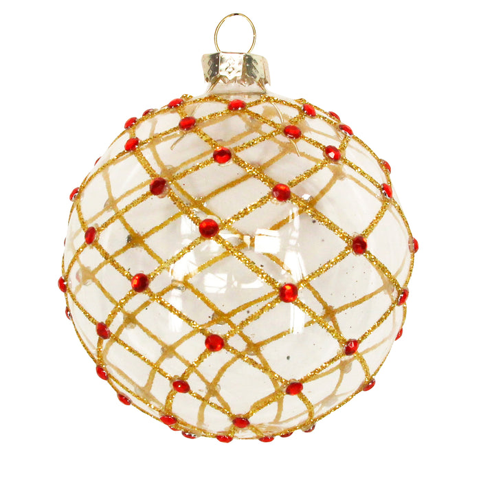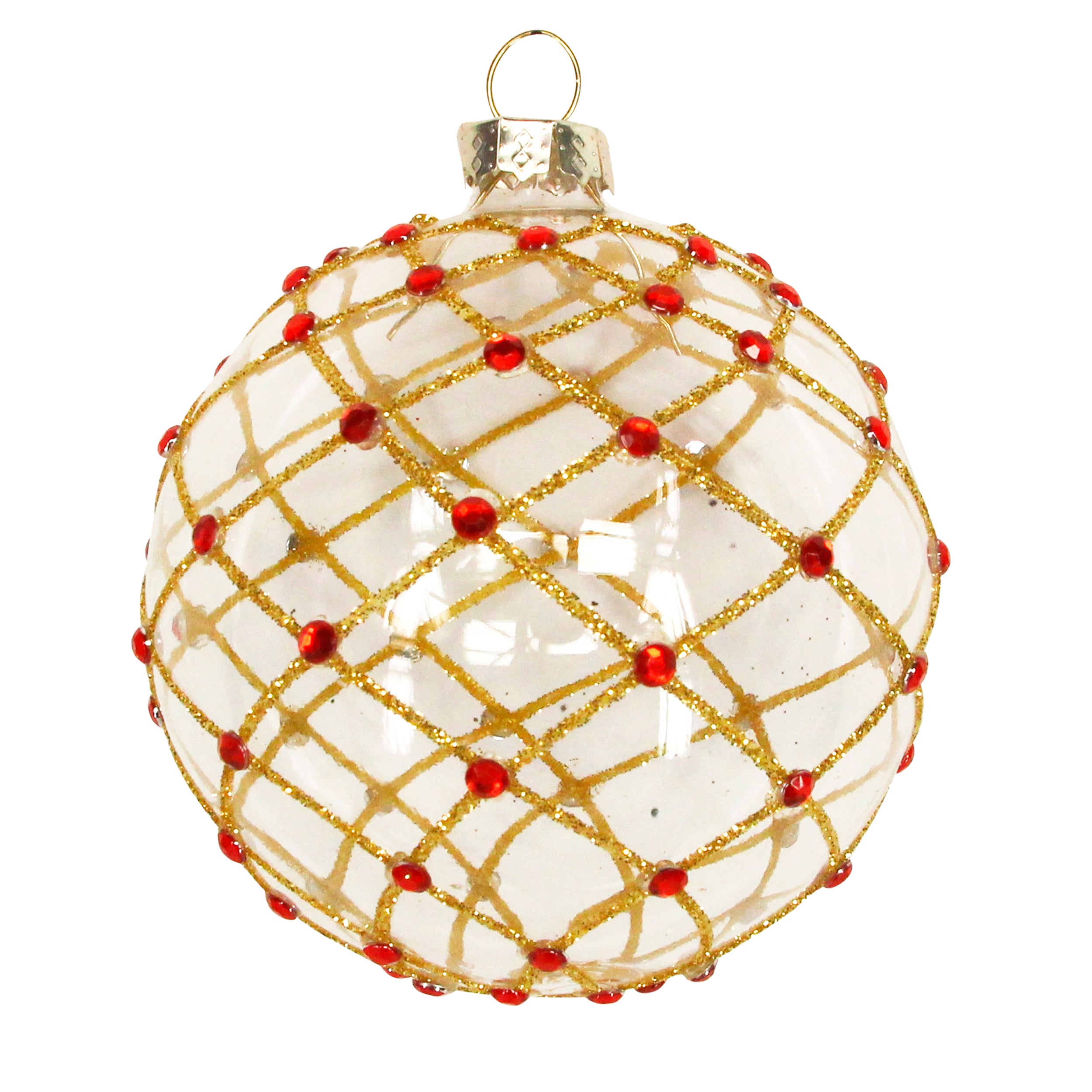 Gisela Graham Clear Glass Bauble with Gold and Red Detail